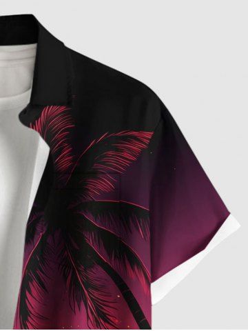 Plus Size Coconut Tree Ombre Galaxy Print Hawaii Button Pocket Shirt For Men - Red - L