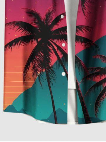 Short Sleeves Shirts > Plus Size Coconut Tree Ombre Galaxy Print Hawaii Button Pocket Shirt For Men