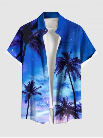 Plus Size Coconut Tree Ombre Galaxy Print Hawaii Button Pocket Shirt For Men - Sky Blue - 2xl
