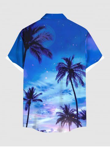 Plus Size Coconut Tree Ombre Galaxy Print Hawaii Button Pocket Shirt For Men - Sky Blue - 6xl