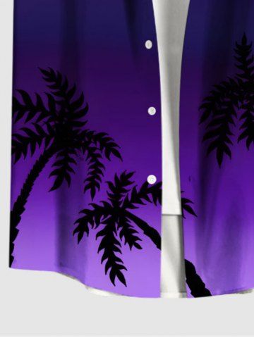 Plus Size Coconut Tree Ombre Galaxy Print Hawaii Button Pocket Shirt For Men - Black - 2xl