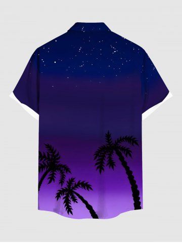 Short Sleeves Shirts > Plus Size Coconut Tree Ombre Galaxy Print Hawaii Button Pocket Shirt For Men