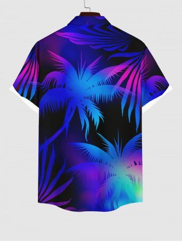 Plus Size Coconut Tree Ombre Glitter 3D Print Buttons Pocket Hawaii Shirt For Men - Multi-a - L