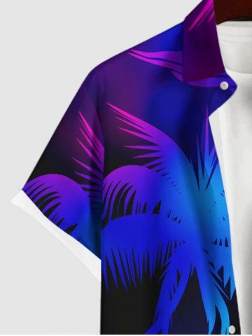 Short Sleeves Shirts > Plus Size Coconut Tree Ombre Glitter 3D Print Buttons Pocket Hawaii Shirt For Men