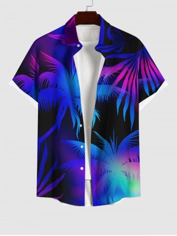 Plus Size Coconut Tree Ombre Glitter 3D Print Buttons Pocket Hawaii Shirt For Men - Multi-a - 4xl