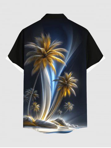 Plus Size Coconut Tree Ombre Light Beam Print Hawaii Button Pocket Shirt For Men - Black - Xl