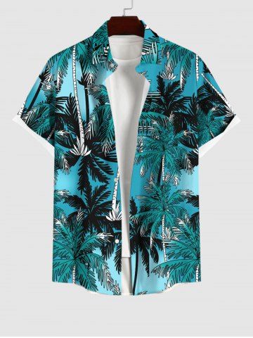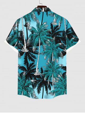 Plus Size Coconut Tree Ombre Print Buttons Pocket Hawaii Shirt For Men - Green - S