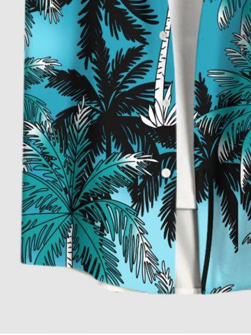 Plus Size Coconut Tree Ombre Print Buttons Pocket Hawaii Shirt For Men - Green - 3xl