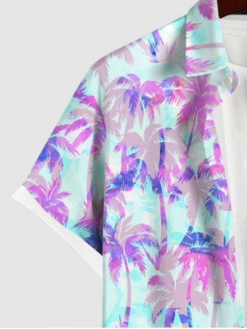 Plus Size Coconut Tree Ombre Print Buttons Pocket Hawaii Shirt For Men - Multi-a - L