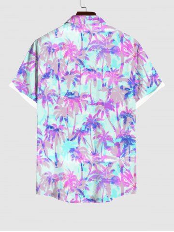 Plus Size Coconut Tree Ombre Print Buttons Pocket Hawaii Shirt For Men - Multi-a - 2xl