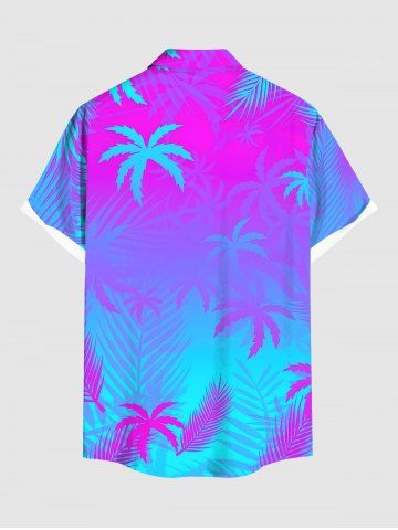 Plus Size Coconut Tree Ombre Print Buttons Pocket Hawaii Shirt For Men - Purple - 5xl