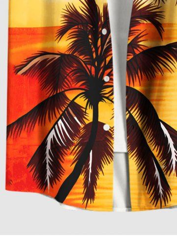Plus Size Coconut Tree Ombre Print Buttons Pocket Hawaii Shirt For Men - Yellow - Xl