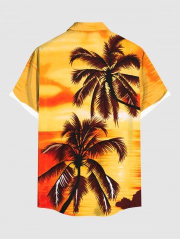 Plus Size Coconut Tree Ombre Print Buttons Pocket Hawaii Shirt For Men - Yellow - 4xl