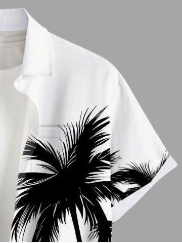 Plus Size Coconut Tree Ombre Print Buttons Pocket Hawaii Shirt For Men - White - 2xl