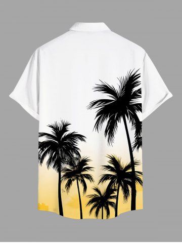 Plus Size Coconut Tree Ombre Print Buttons Pocket Hawaii Shirt For Men - White - 4xl