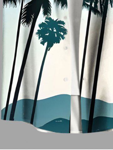 Plus Size Coconut Tree Ombre Print Buttons Pocket Hawaii Shirt For Men - Green - 3xl