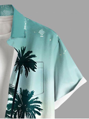 Plus Size Coconut Tree Ombre Print Buttons Pocket Hawaii Shirt For Men - Green - 6xl