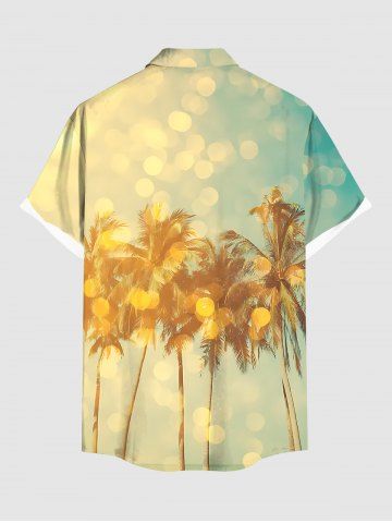 Plus Size Coconut Tree Ombre Print Buttons Pocket Hawaii Shirt For Men - Yellow - L