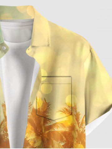 Plus Size Coconut Tree Ombre Print Buttons Pocket Hawaii Shirt For Men - Yellow - 6xl