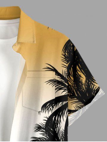 Short Sleeves Shirts > Plus Size Coconut Tree Ombre Print Buttons Pocket Hawaii Shirt For Men