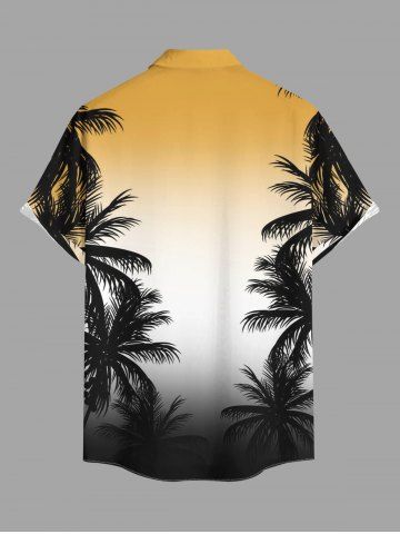 Plus Size Coconut Tree Ombre Print Buttons Pocket Hawaii Shirt For Men - Light Coffee - Xl