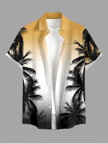 Short Sleeves Shirts > Plus Size Coconut Tree Ombre Print Buttons Pocket Hawaii Shirt For Men