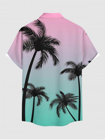 Plus Size Coconut Tree Ombre Print Buttons Pocket Hawaii Shirt For Men - Pink - 4xl