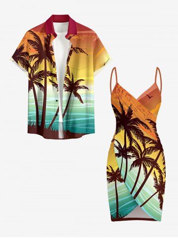 Short Sleeves Shirts > Plus Size Coconut Tree Ombre Print Buttons Pocket Hawaii Shirt For Men