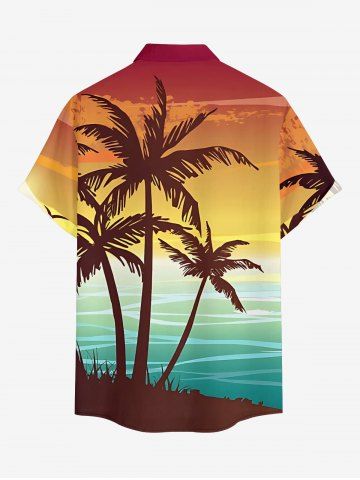 Short Sleeves Shirts > Plus Size Coconut Tree Ombre Print Buttons Pocket Hawaii Shirt For Men