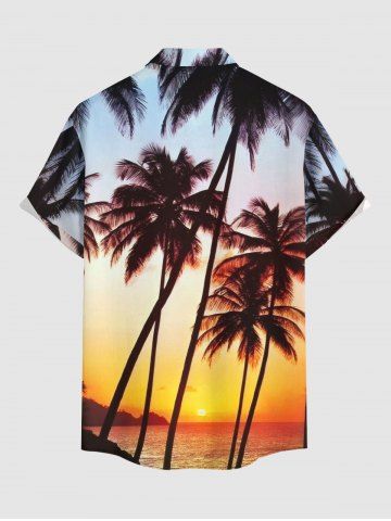 Short Sleeves Shirts > Plus Size Coconut Tree Ombre Print Buttons Pocket Hawaii Shirt For Men