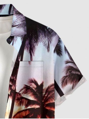Short Sleeves Shirts > Plus Size Coconut Tree Ombre Print Buttons Pocket Hawaii Shirt For Men