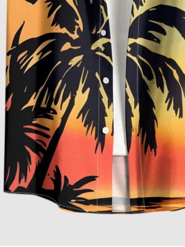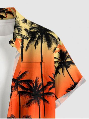 Plus Size Coconut Tree Ombre Print Buttons Pocket Hawaii Shirt For Men - Orange - S