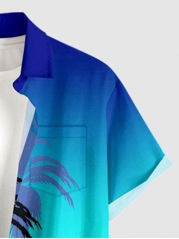 Plus Size Coconut Tree Ombre Print Buttons Pocket Hawaii Shirt For Men - Blue - S
