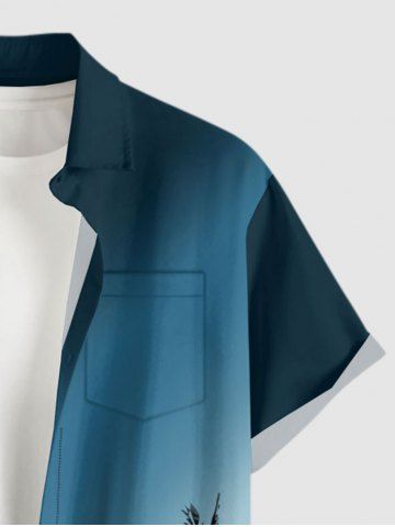 Plus Size Coconut Tree Ombre Print Buttons Pocket Hawaii Shirt For Men - Peacock Blue - 5xl