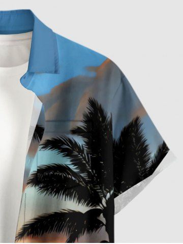 Short Sleeves Shirts > Plus Size Coconut Tree Ombre Print Buttons Pocket Hawaii Shirt For Men