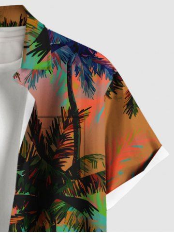 Short Sleeves Shirts > Plus Size Coconut Tree Ombre Print Hawaii Button Pocket Shirt For Men