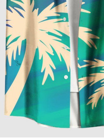 Plus Size Coconut Tree Ombre Print Hawaii Button Pocket Shirt For Men - Green - 4xl