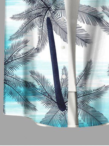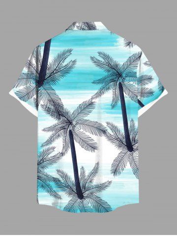 Plus Size Coconut Tree Ombre Sea Print Buttons Pocket Hawaii Shirt For Men - Blue - 4xl
