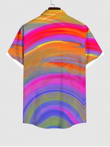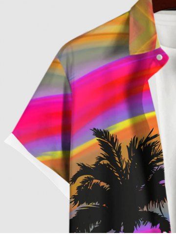 Plus Size Coconut Tree Ombre Sky Colorblock Rainbow Print Hawaii Button Pocket Shirt For Men - Multi-a - M