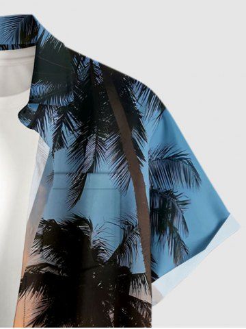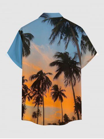 Plus Size Coconut Tree Ombre Sky Dusk Print Hawaii Button Pocket Shirt For Men - Sky Blue - 4xl