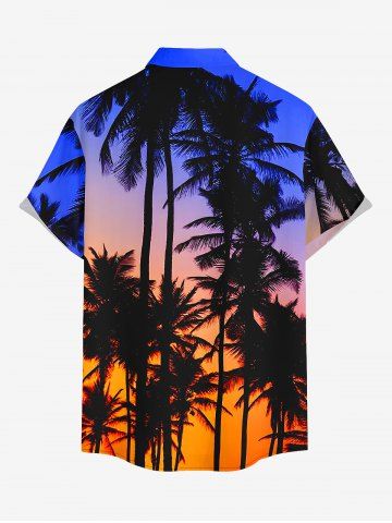 Short Sleeves Shirts > Plus Size Coconut Tree Ombre Sky Dusk Print Hawaii Button Pocket Shirt For Men