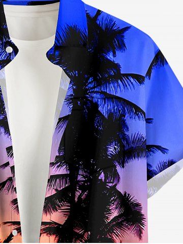Short Sleeves Shirts > Plus Size Coconut Tree Ombre Sky Dusk Print Hawaii Button Pocket Shirt For Men