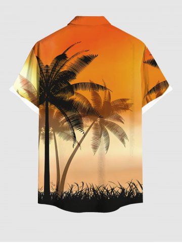 Plus Size Coconut Tree Ombre Sky Grass Print Hawaii Button Pocket Shirt For Men - Orange - S