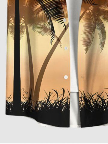 Plus Size Coconut Tree Ombre Sky Grass Print Hawaii Button Pocket Shirt For Men - Orange - Xl