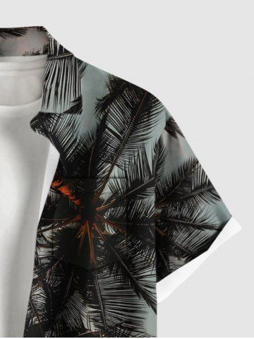 Plus Size Coconut Tree Ombre Sky Print Buttons Pocket Hawaii Shirt For Men - Black - 3xl