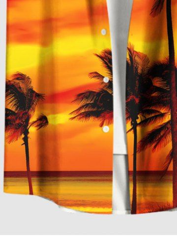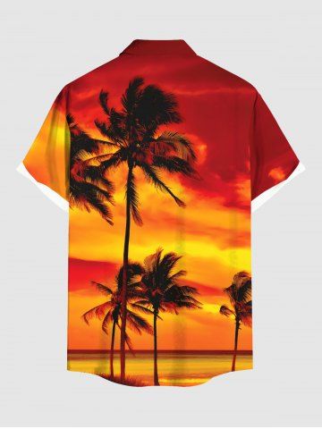 Plus Size Coconut Tree Ombre Sky Print Buttons Pocket Hawaii Shirt For Men - Dark Orange - 5xl