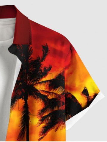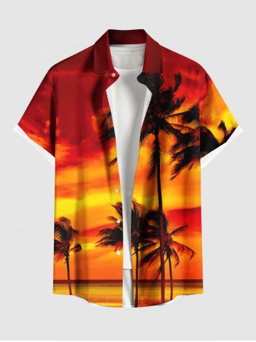 Short Sleeves Shirts > Plus Size Coconut Tree Ombre Sky Print Buttons Pocket Hawaii Shirt For Men