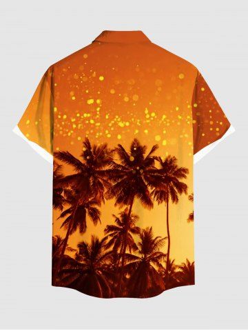 Plus Size Coconut Tree Ombre Sky Print Buttons Pocket Hawaii Shirt For Men - Orange - 2xl