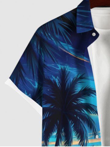 Short Sleeves Shirts > Plus Size Coconut Tree Ombre Sky Print Hawaii Button Pocket Shirt For Men