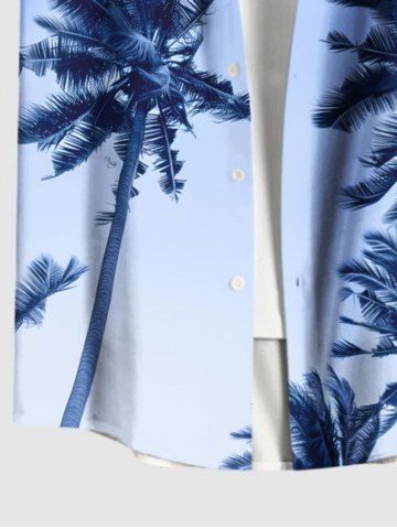 Plus Size Coconut Tree Ombre Sky Print Hawaii Button Pocket Shirt For Men - Light Blue - 6xl
